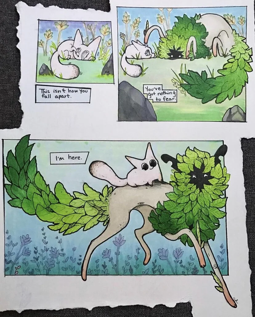 My name is Erin aka TigrSpoon. I am a Washington D.C. native. I love playing video games like Splatoon, Gris, and Untitled Goose Game. I draw food, fun characters, and forest spirits in comic form and as stand-alone illustrations. I also like to make merch!